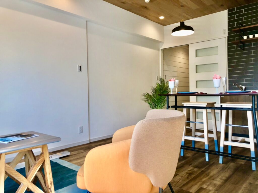 『URBAN SURF MIX』をコンセプトの元、天然木やアイアンパーツ、更にイタリア製のタイルをうまく取り入れ、シンプルでカジュアルな中に洗練された都会的な雰囲気を感じることのできる空間作りを目指しました。