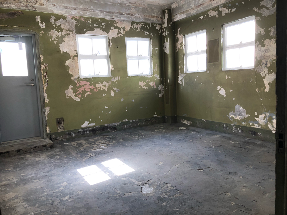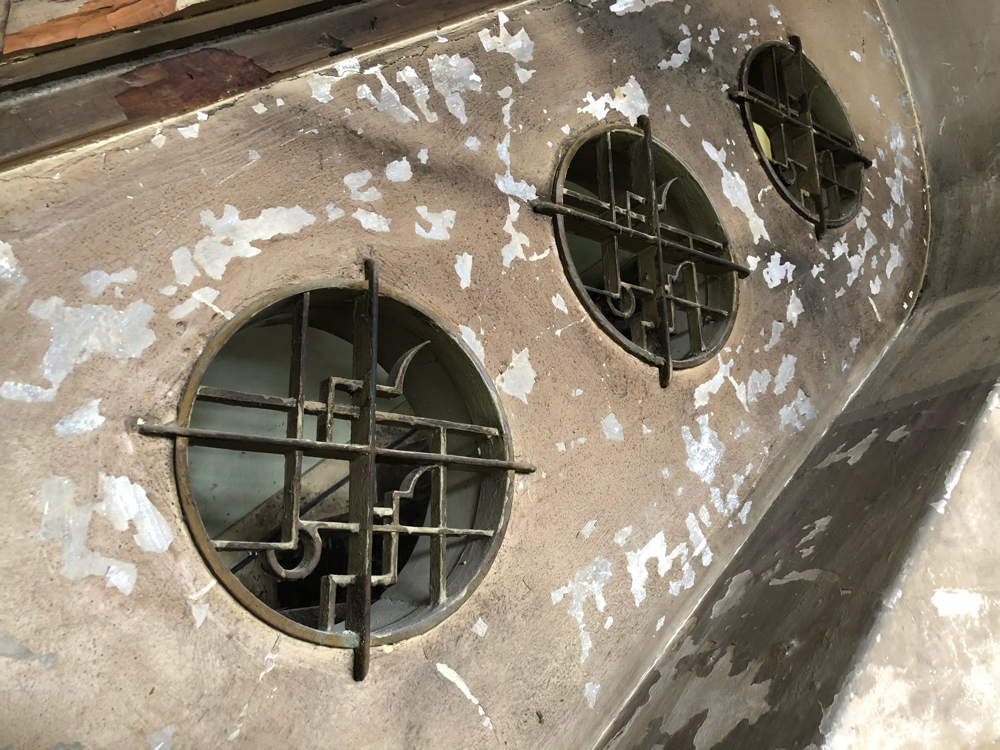 内部はこれから内装工事ですが工事中に出てきた階段周りの装飾や室内の雰囲気などなるべくそのまま残しています。