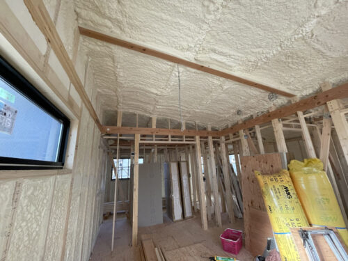神戸市中央区 山本通戸建PROJECT 壁面に断熱材が施工されました 今回使用した断熱材は一般的なグラスウール断熱材では無く、発泡性の断熱材です。 現場でA液体とB液体を混ぜて吹き付けるとモコモコと膨らんで 壁面に全体に […]