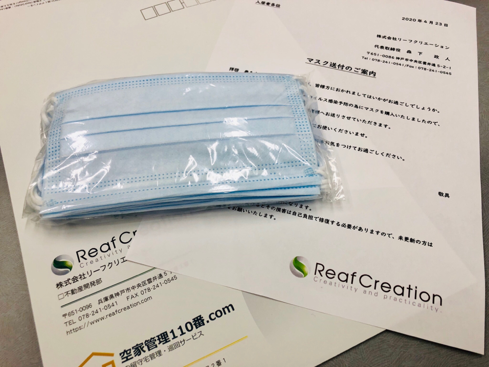マスクをお送りしました 2020年4月26日 最終更新日時 : 2026年2月26日 reafcreation01 先日、入居者の皆さんとお客様に少ないですがマスクをお送りしました。 枚数足りなかったので自分の分は無くなってしまったけど、またマスク探しますね #マスク FacebookXBlueskyHatena